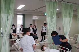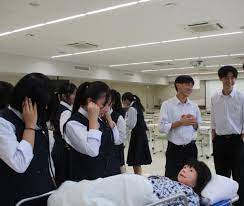 鳥取商業高校の学生さん14人が修学旅行の一環として、当校に見学に来ました。血圧測定や人形の呼吸音を聞く体験をしました。今日は1~3年生の学生たち鳥取商業高校の学生がちょうど演習をしていたので、その様子も真剣な眼差しで見ていました。今回の体験によって医療の現場により関心を持って、進路の選択の1つに加えてもらえるとうれしいです。